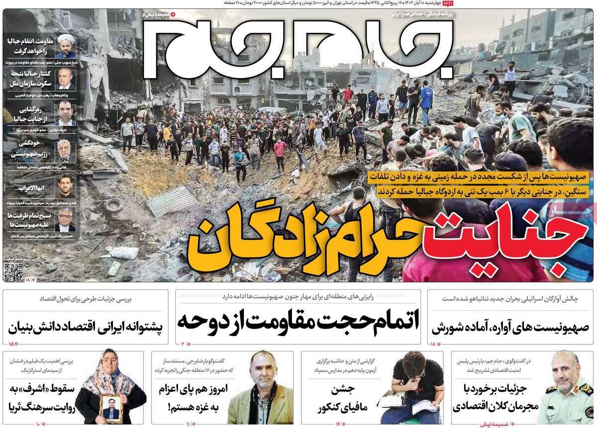 صفحه اول روزنامه های 4شنبه 10 آبان 1402