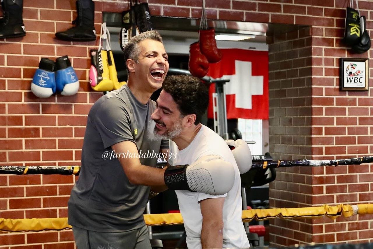 تصاویر | پشت صحنه جالب مصاحبه عادل فردوسی پور و همایون شجریان در رینگ بوکس