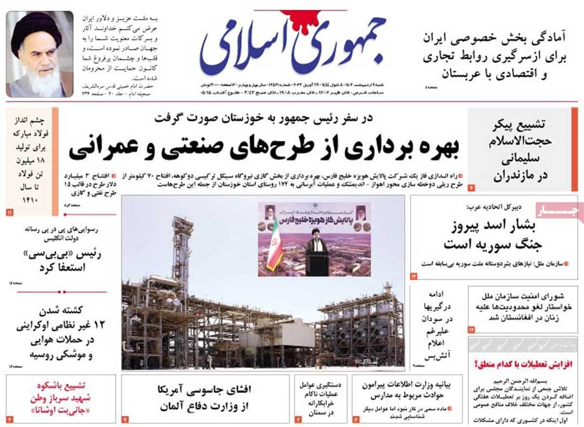 صفحه اول روزنامه های شنبه 9 اردیبهشت 1402